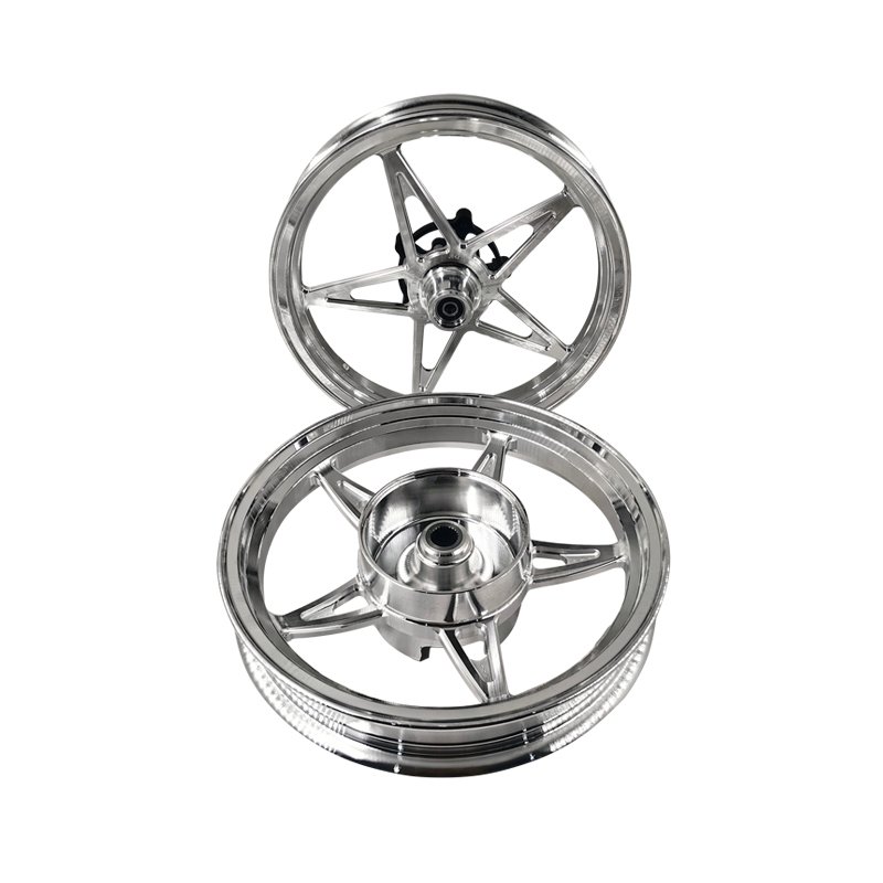Crafted from high-strength A356.2 aluminum alloy and produced with precision gravity casting techniques, these wheels guarantee exceptional durability and balance. Designed with a classic symmetrical five-spoke star, the Motorcycle Alloy Wheel offers a lightweight construction that enhances your bike's appearance while ensuring superior performance.